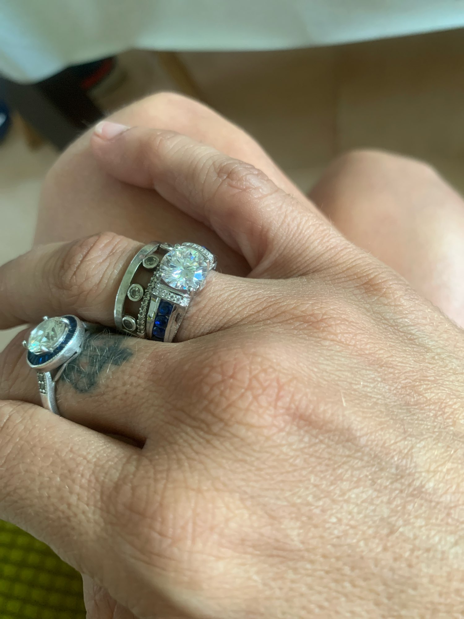 Brillante y brillante, ¡un anillo tan hermoso! Sólo deseo que sus opciones de oro sean en realidad oro real, pero la plata sea increíble. Si sus opciones de oro eran oro macizo, probablemente compraré más, de lo contrario el anillo de plata también será hermoso.