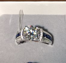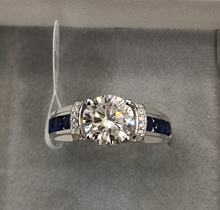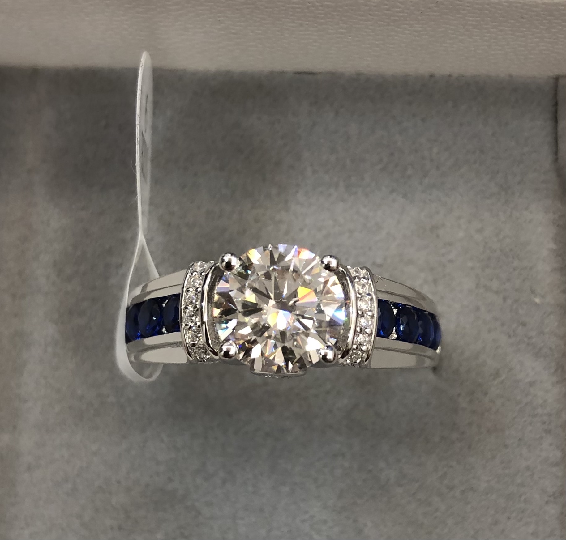 Hermoso anillo, las piedras brillan, vino en una caja de regalo con un certificado y un paño de limpieza. Sólo cuando lo compró estaba escrito que el lado era zafiros, y el certificado era de circón cúbico.