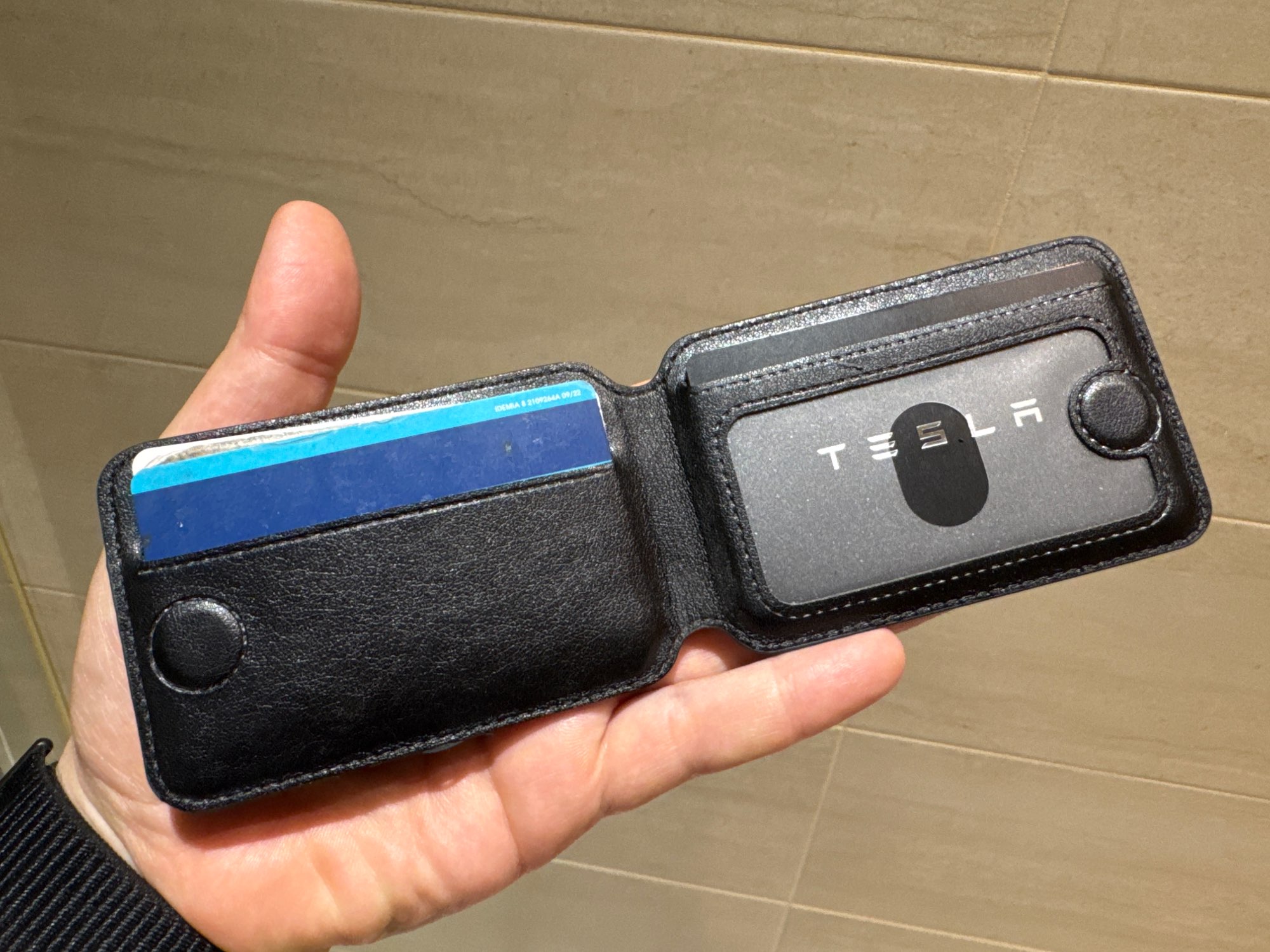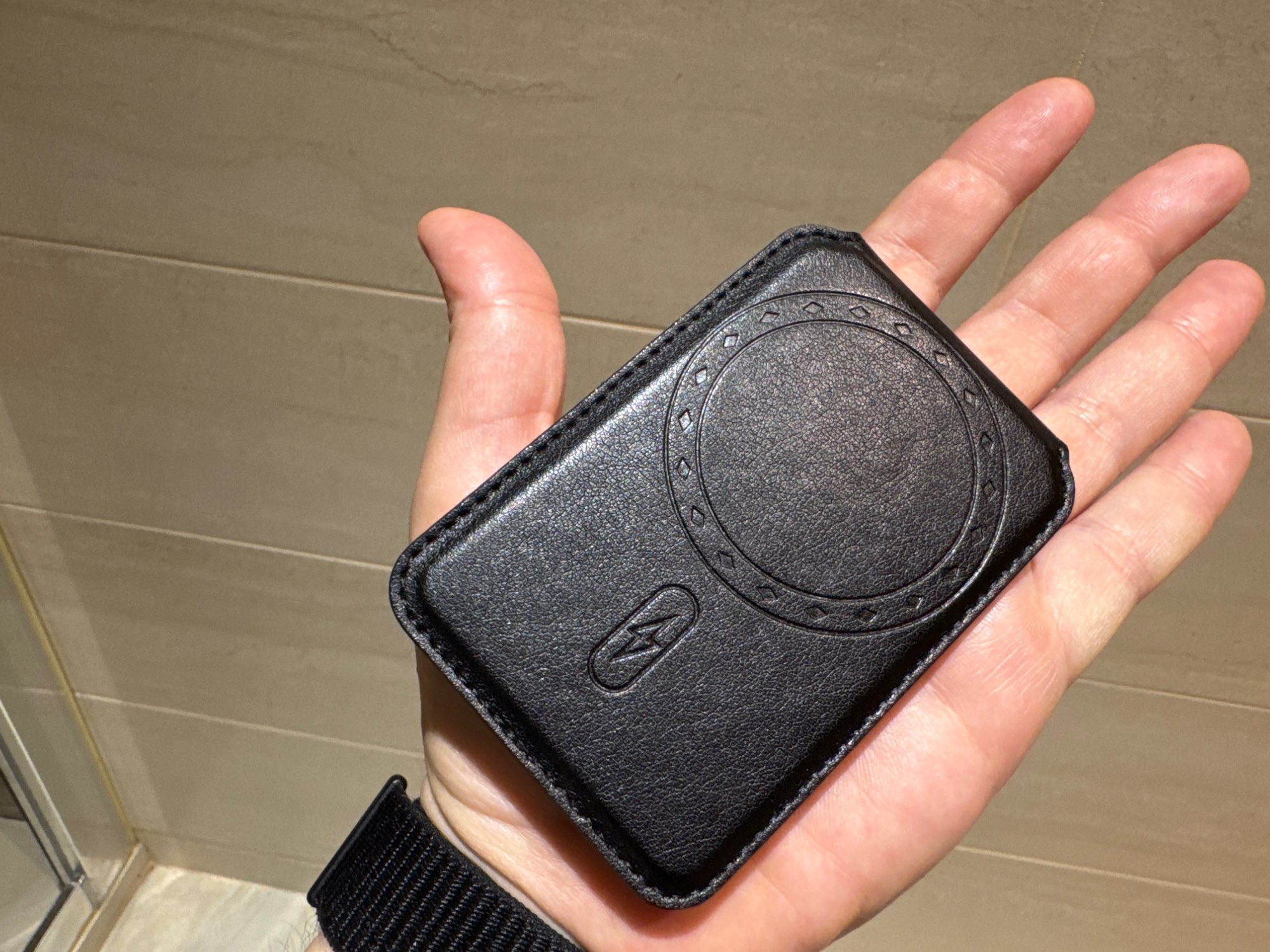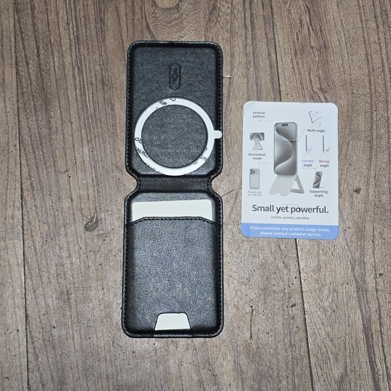 El imán es fuerte, así que no se cae. Además, dado que tiene ranuras para tarjetas en el interior, parece ser bueno también para la seguridad. Es muy bueno. También puedes usarlo como soporte.