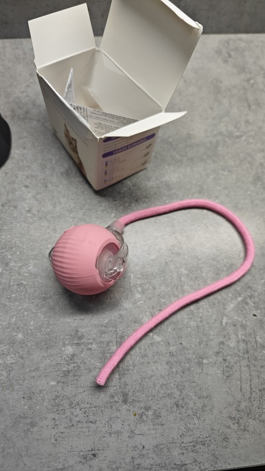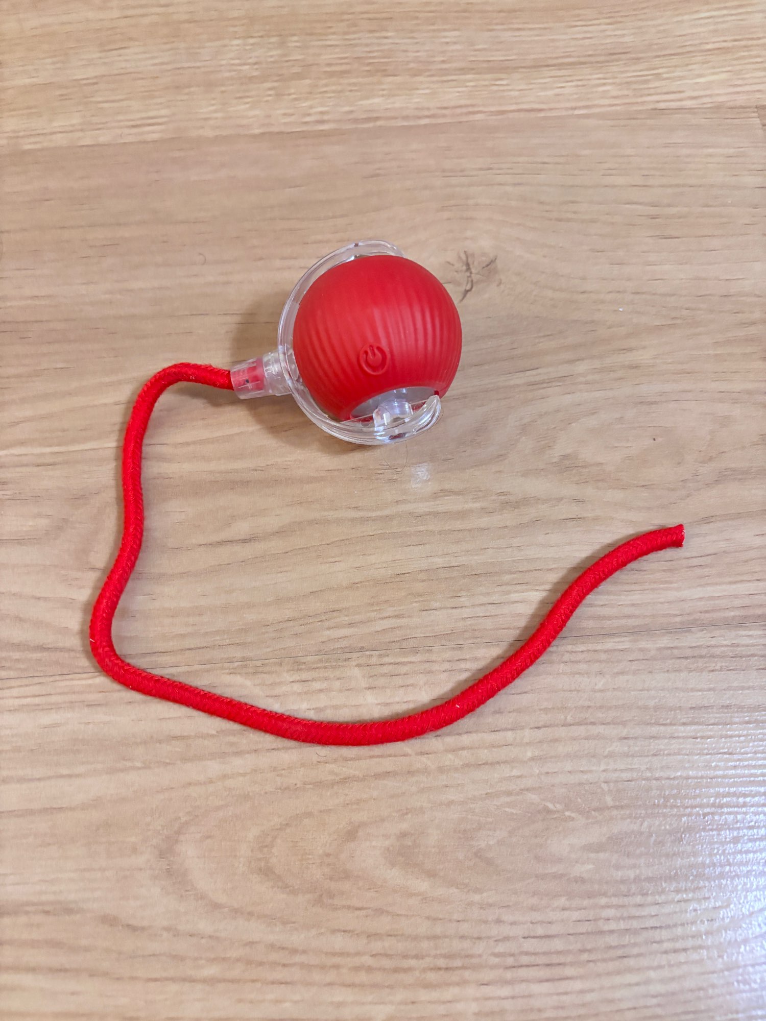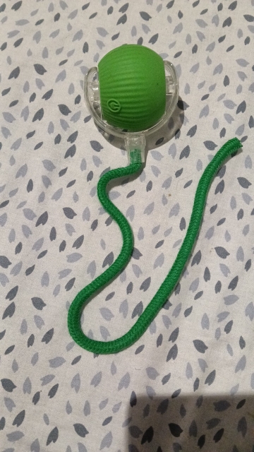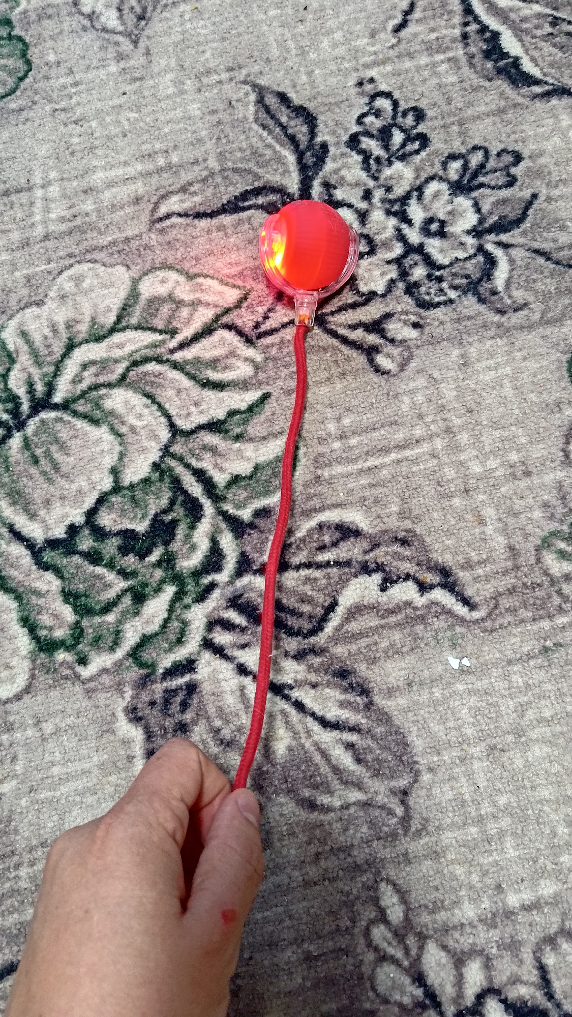 ¡¡¡Es genial!!! Mi gato, una placa base quemada, ya no juega con nada, no le interesa nada. ¡¡¡Pero este juguete devolvió a la vida la curiosidad del gato!!! La pelota tiene varias variaciones de movimiento. Se gira, se gira, se enciende, el cable se interrumpe. ¡Realmente te recomiendo que uses tus cintas!