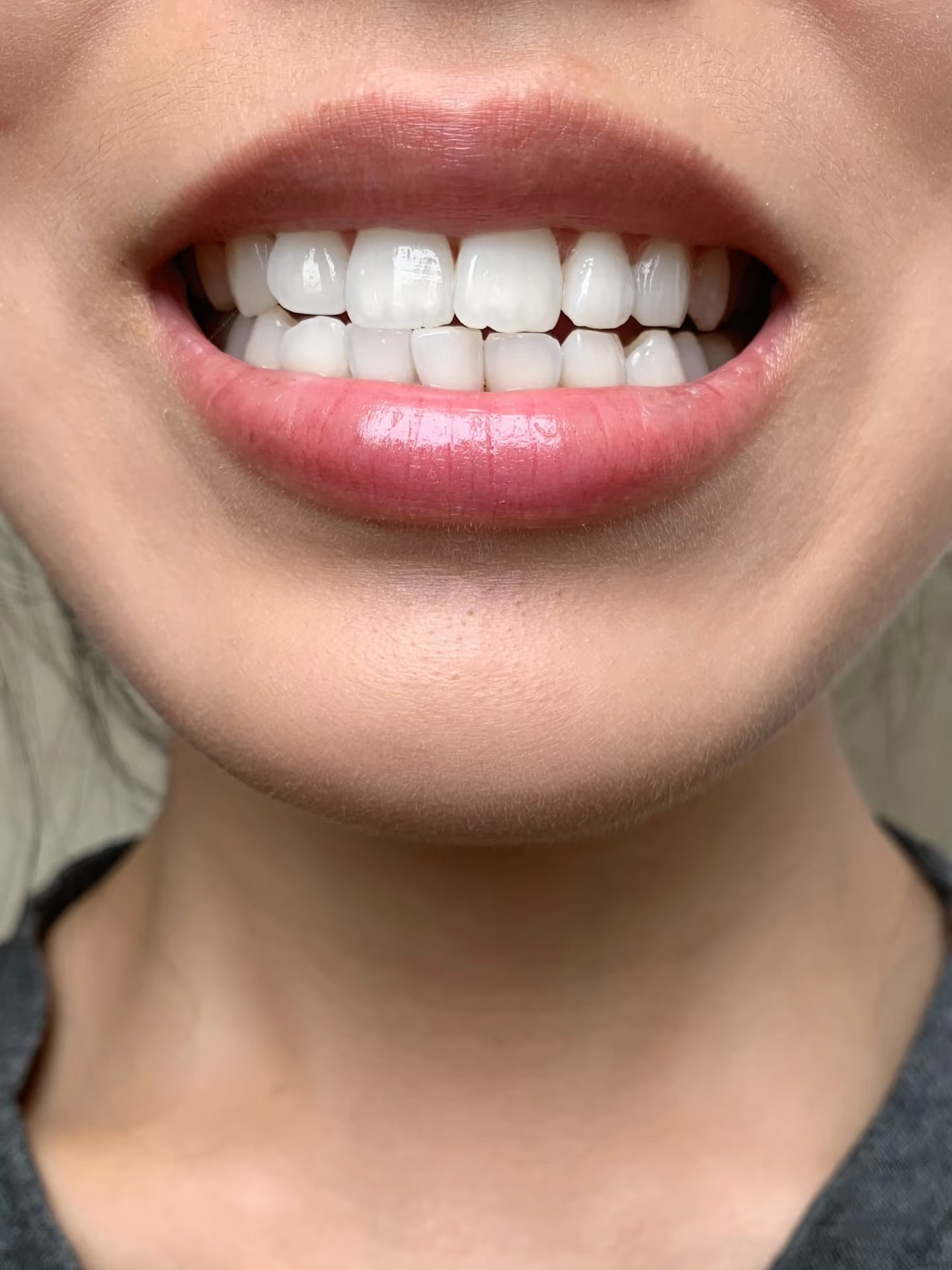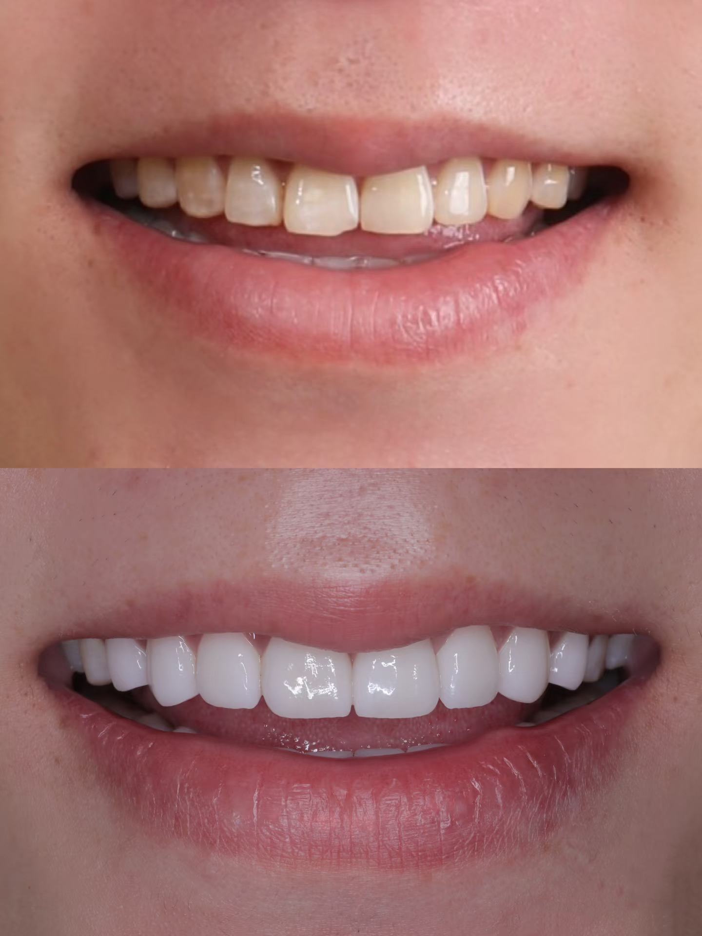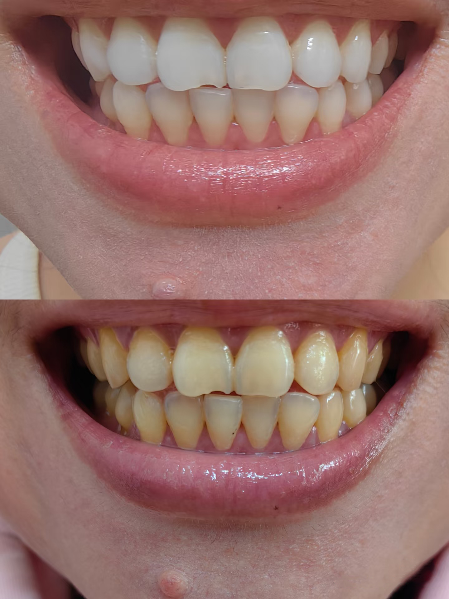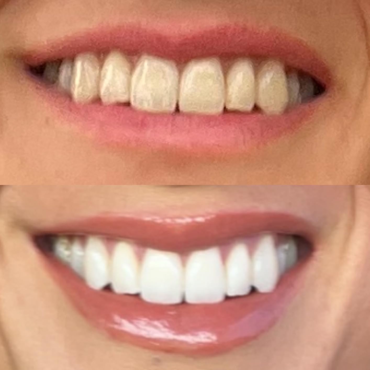 En la misma habitación, la misma iluminación, todo es uniforme. Usé las tiras blancas arriba/abajo por primera vez hoy. ¡Mis dientes son tan poderosos que les encanta! !