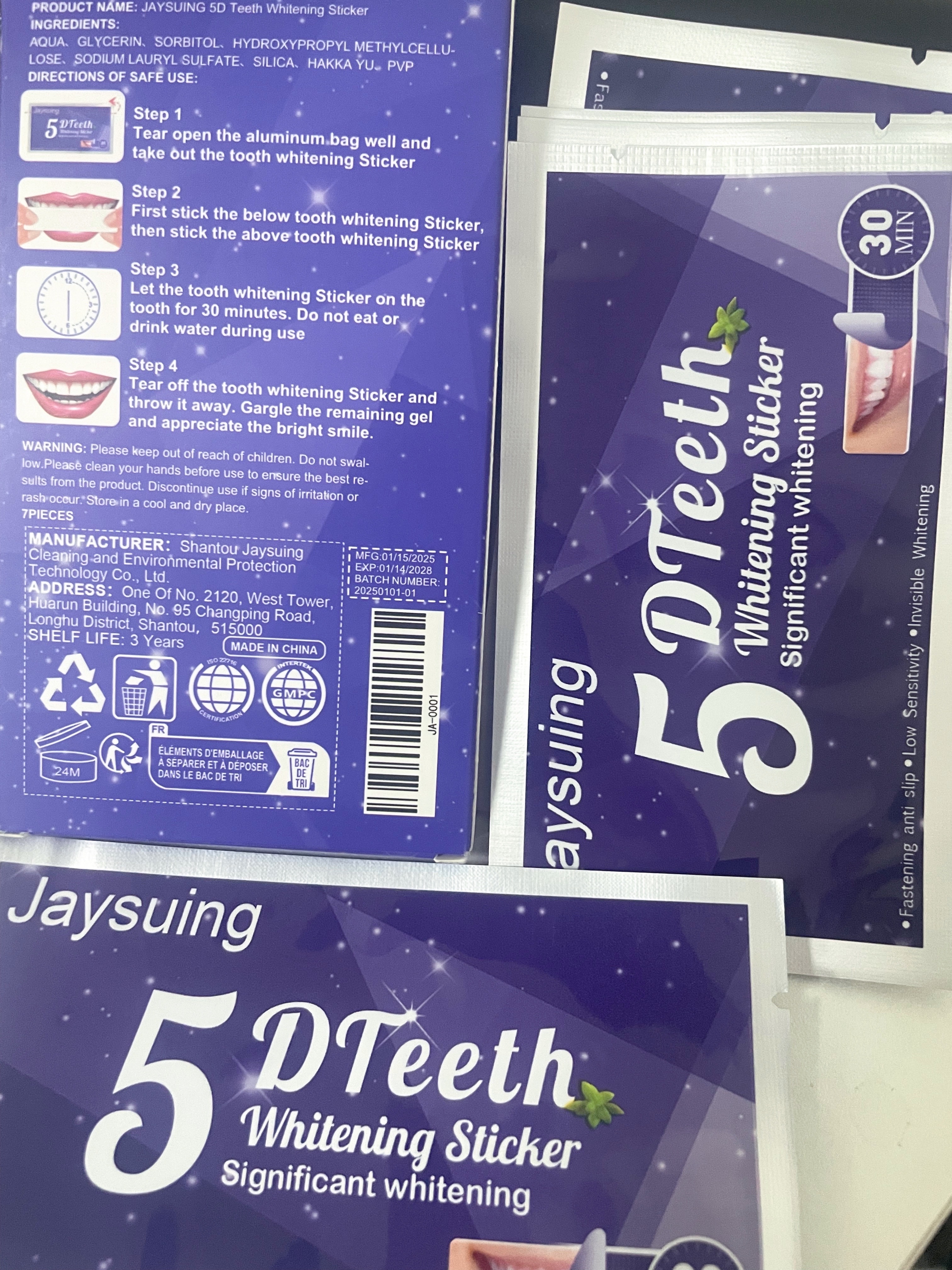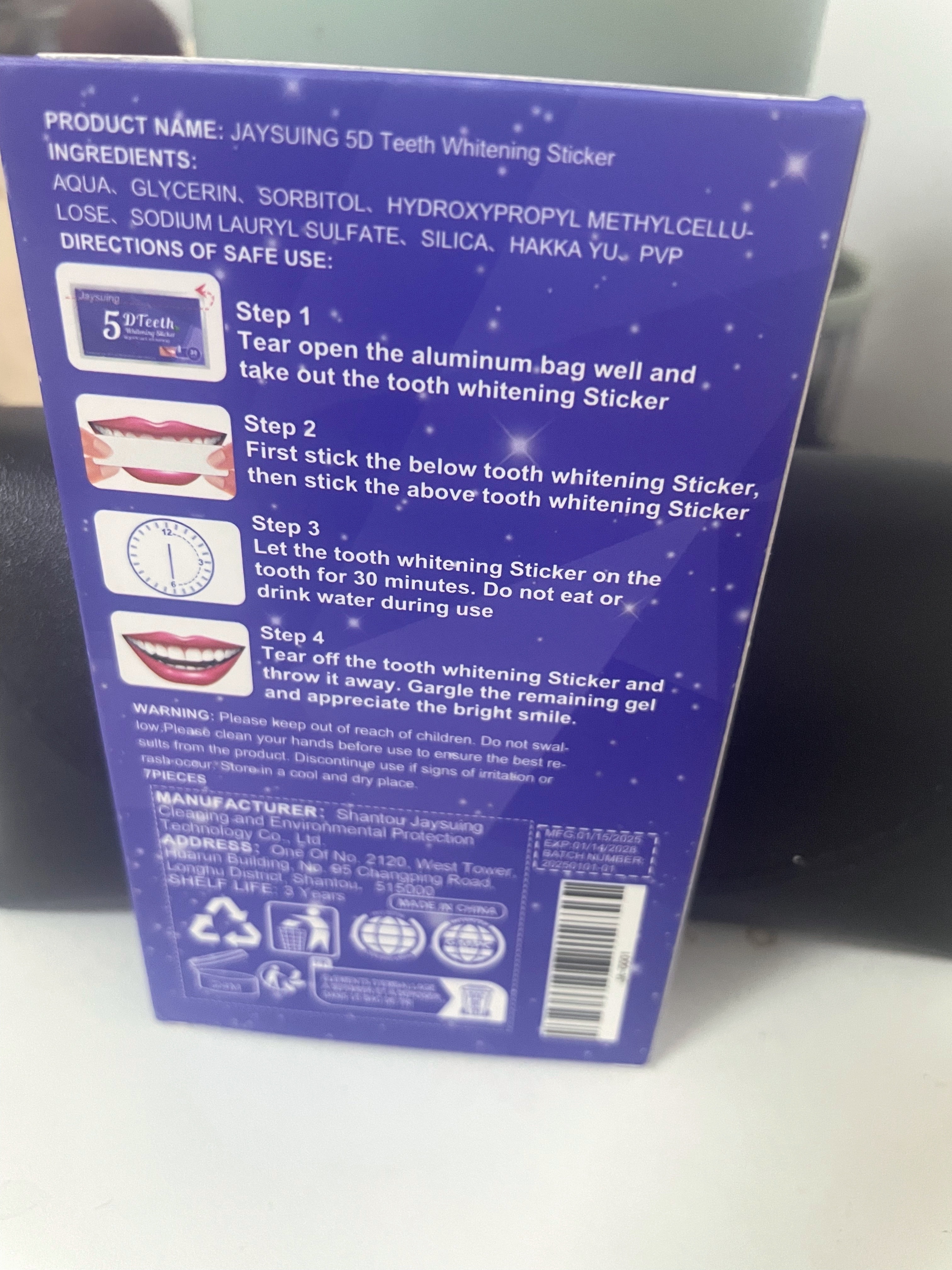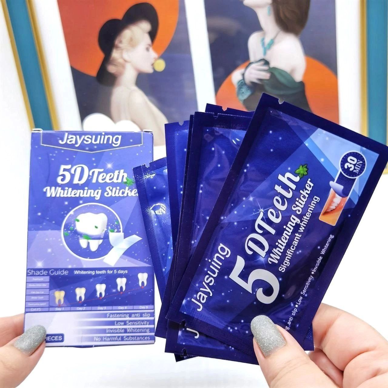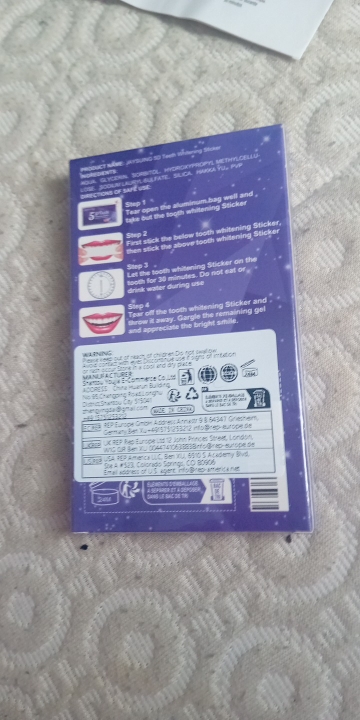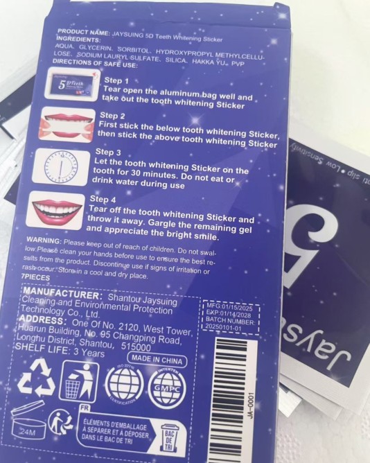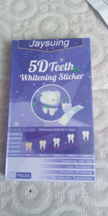 Lo compré para probar. Me gustó usarlo, realmente se blanquea y la sensibilidad de los dientes no aumenta. Facil de usar. Usando pegatinas, puedes comunicarte normalmente y sudar. ¡Puedo recomendarlo para comprar!