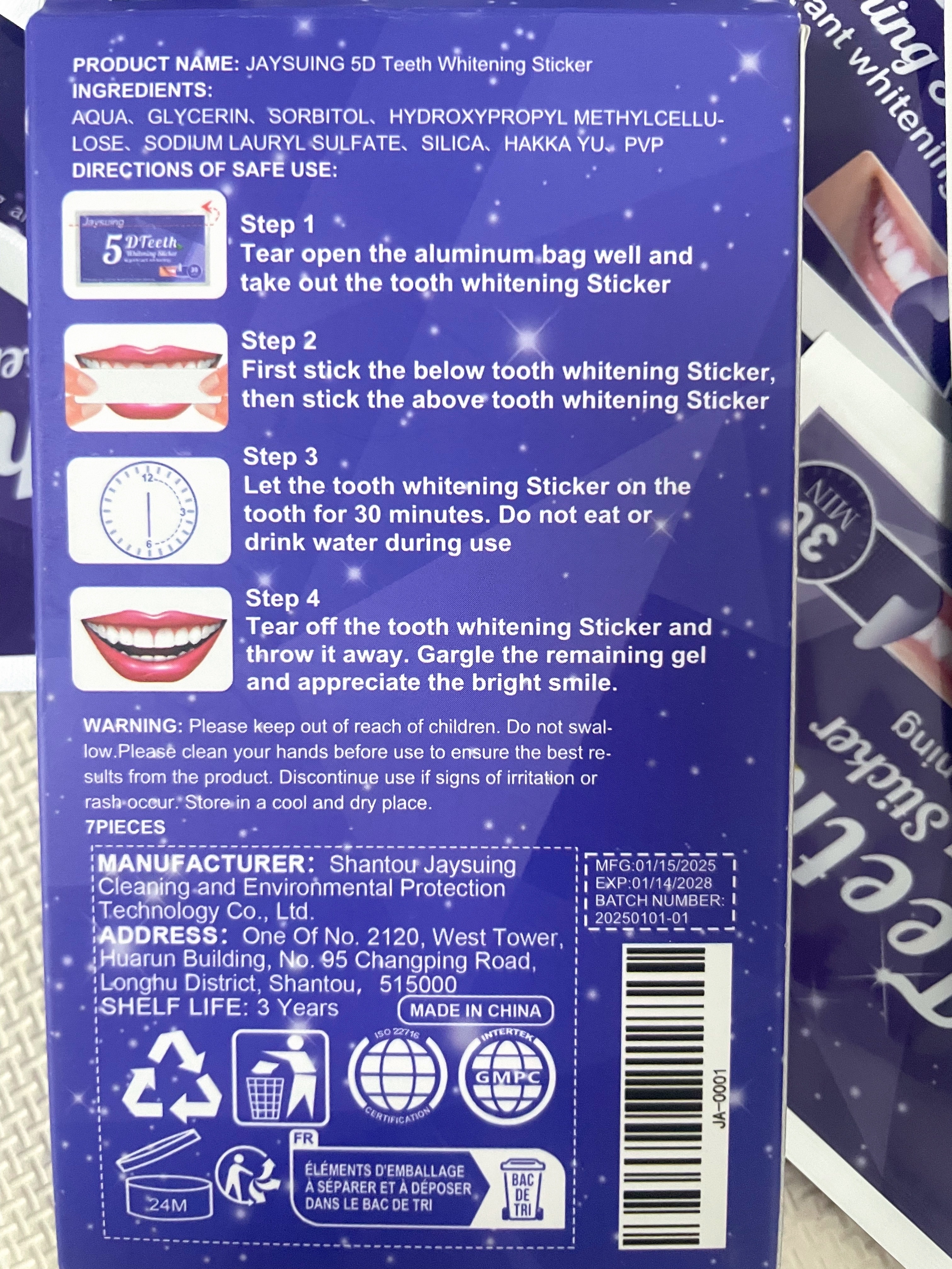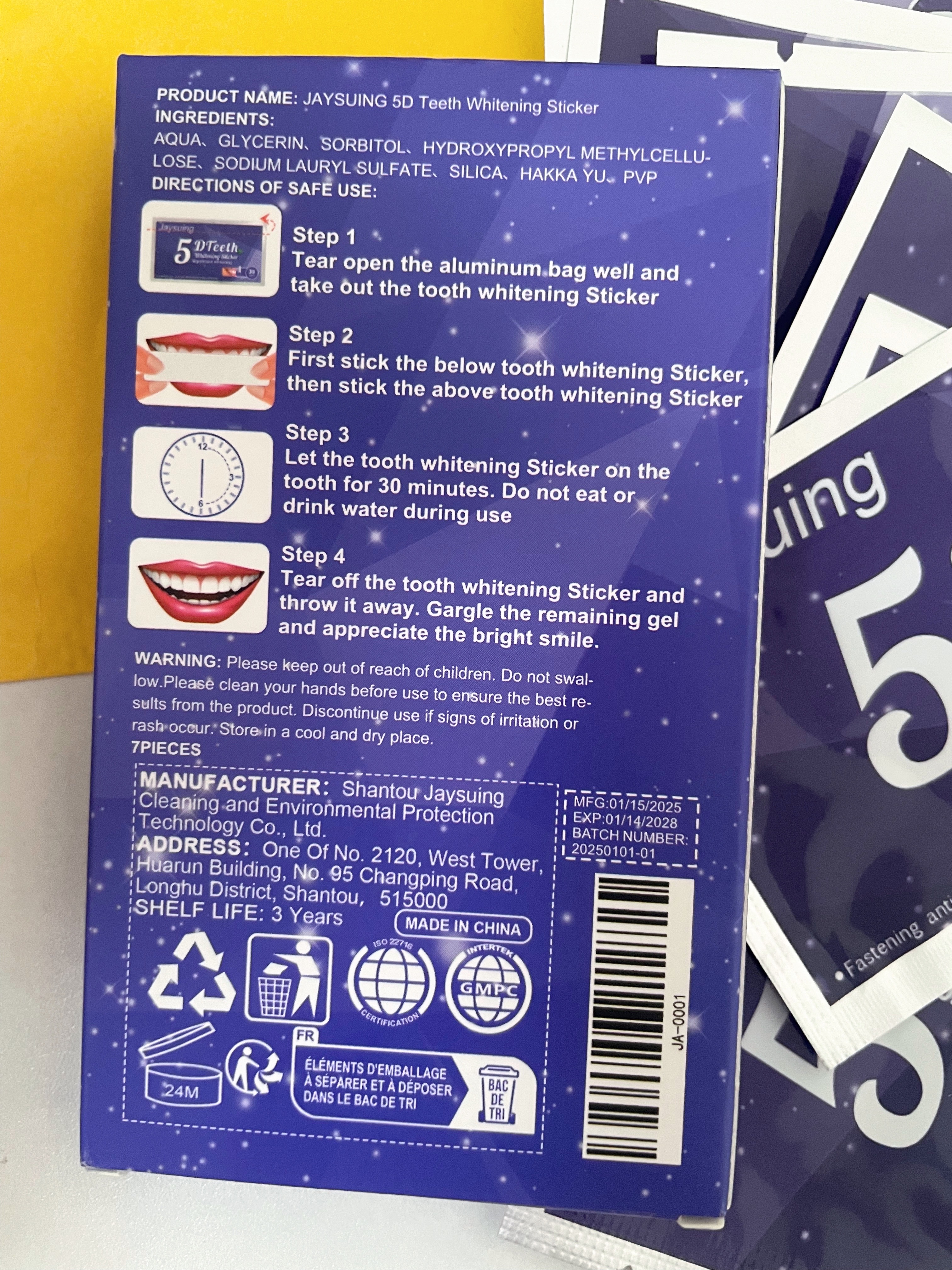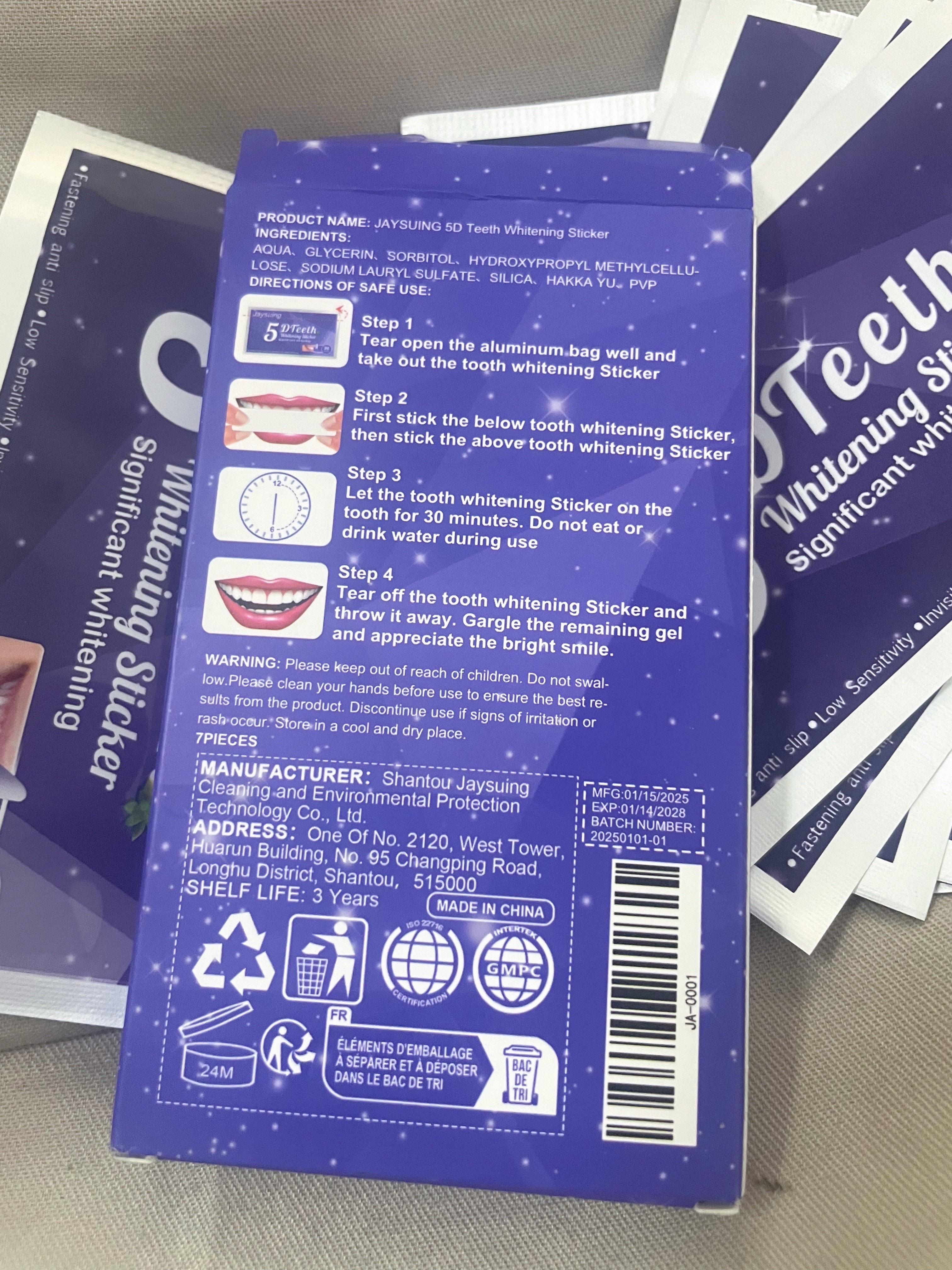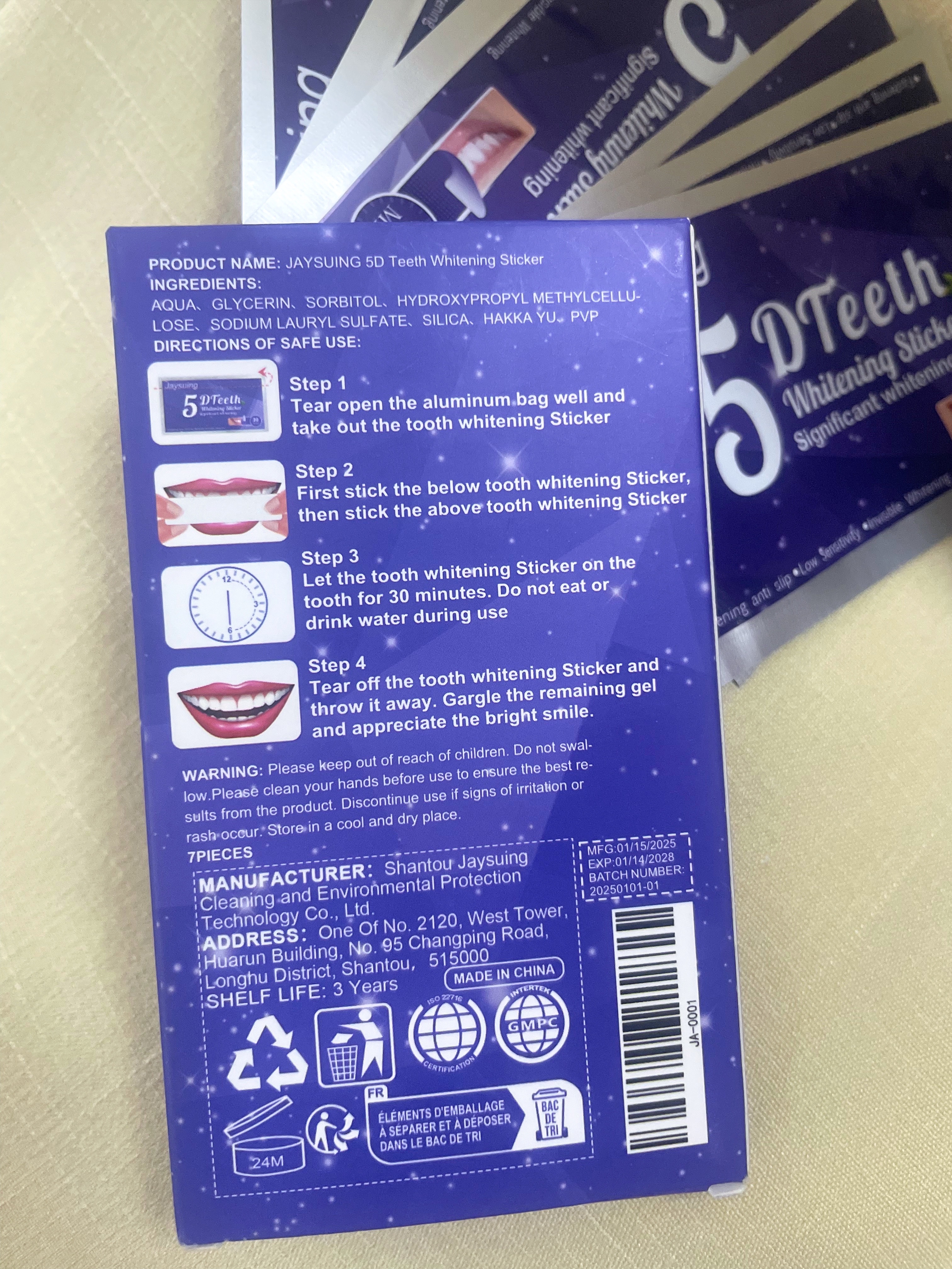 Lo compré para probar. Me gustó usarlo, realmente se blanquea y la sensibilidad de los dientes no aumenta. Facil de usar. Usando pegatinas, puedes comunicarte normalmente y sudar. ¡Puedo recomendarlo para comprar!