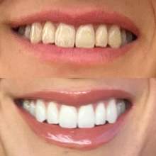 ¡Grandes tiras para blanquear los dientes! Me encanta que estén hechos de ingredientes naturales y sin peróxido. Tengo dientes y encías muy sensibles y encuentro estas tiras suaves para mis dientes. ¡Y se vuelven más blancos a la sombra después de un solo uso! Recomiendo encarecidamente probarlos.