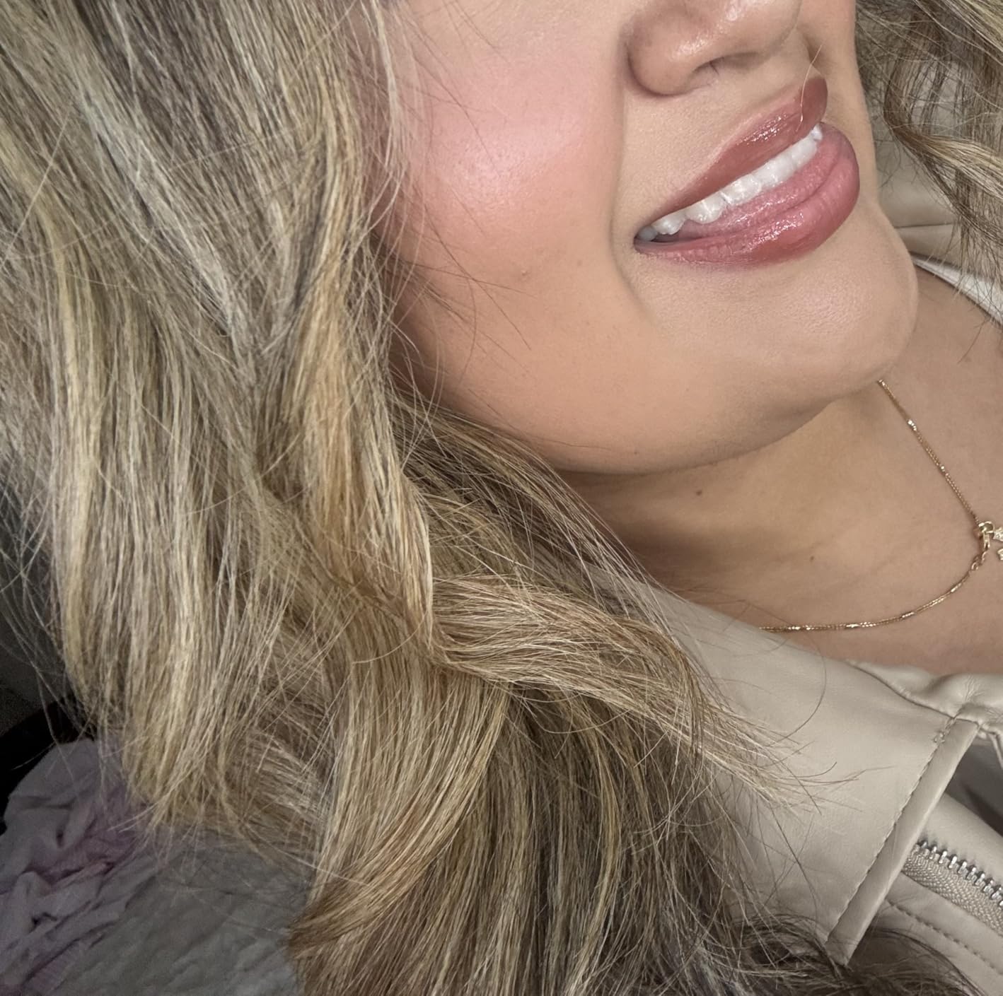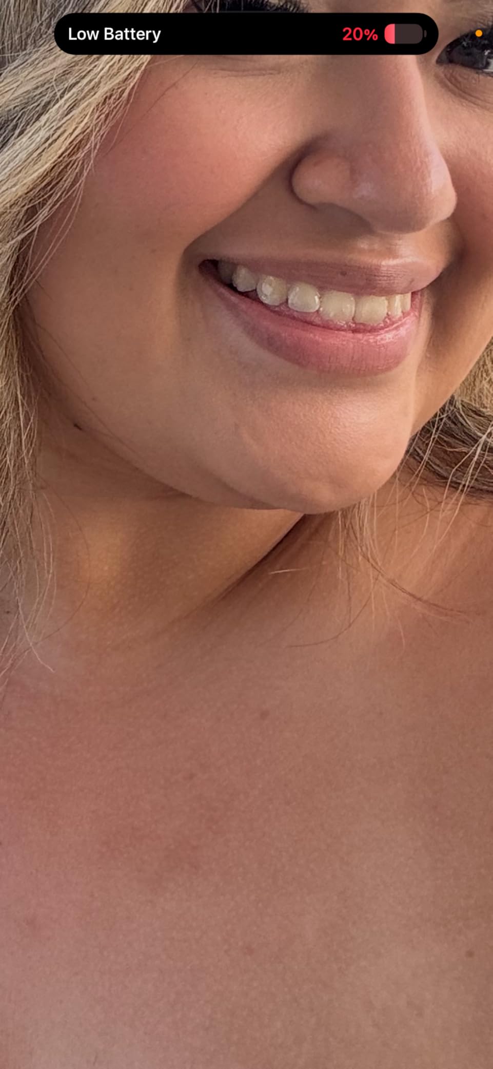 Buen Señor son mis wifes dientes blancos. Por la noche puedo verla cuando sonre.